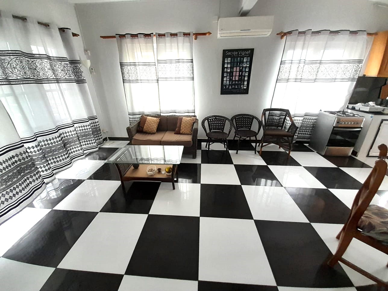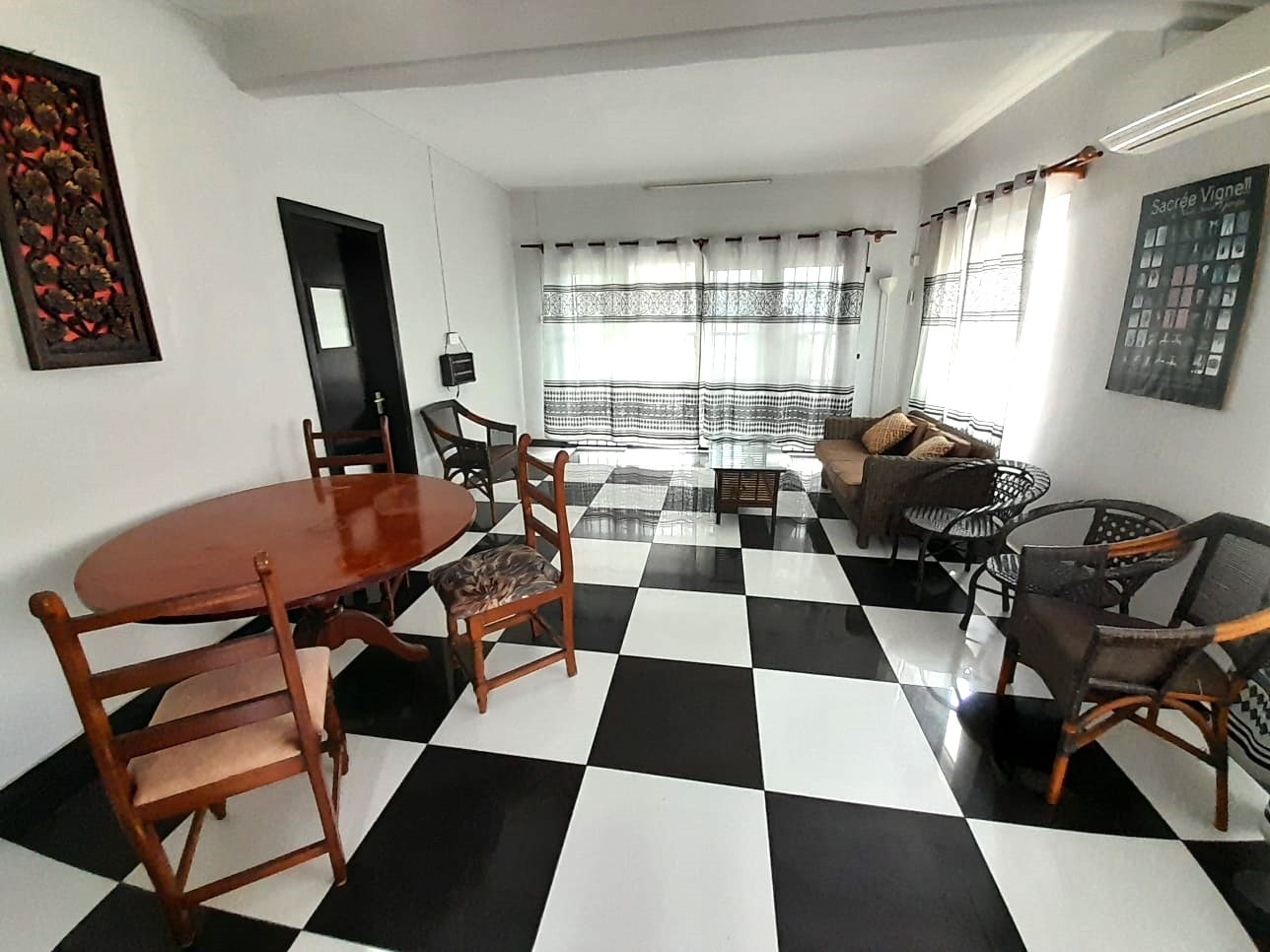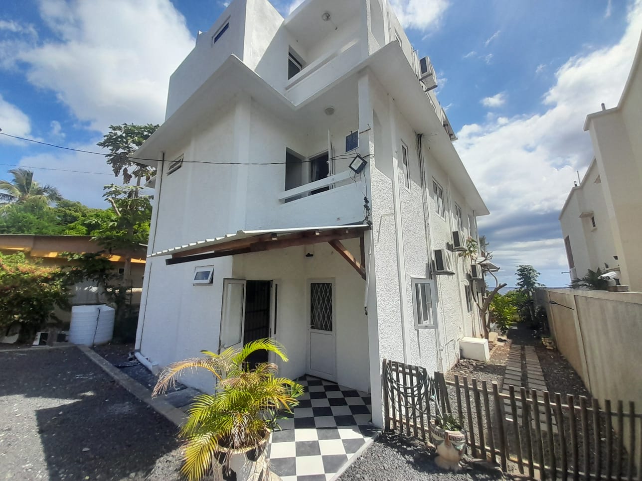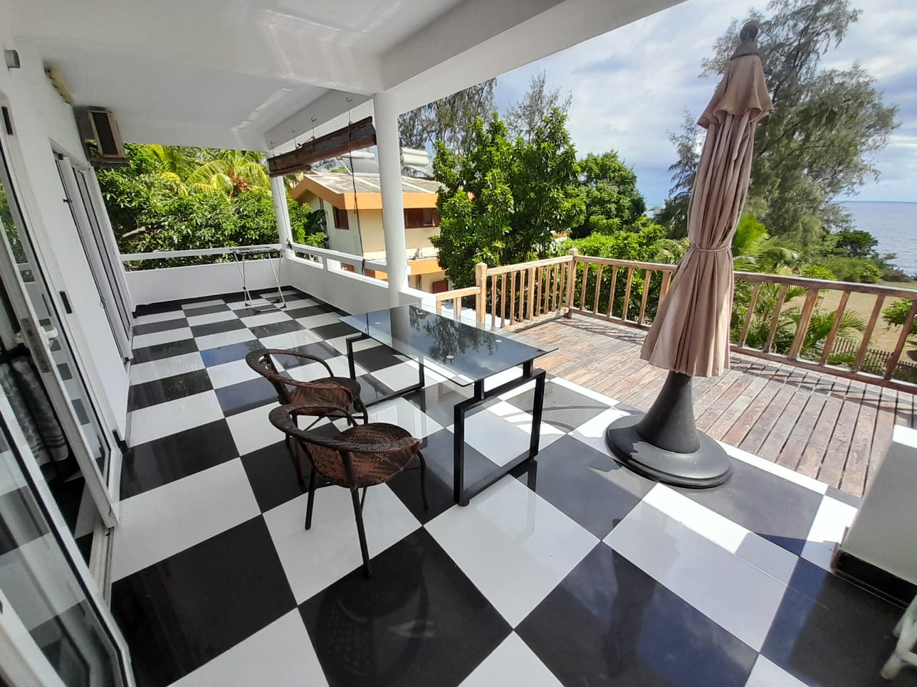 A first-floor apartment in a beachfront villa in Flic en Flac, offering direct access to the sea, a covered balcony with sea view, and a common pool. A straightforward and well-positioned rental for those seeking coastal living on the west coast of Mauritius.
