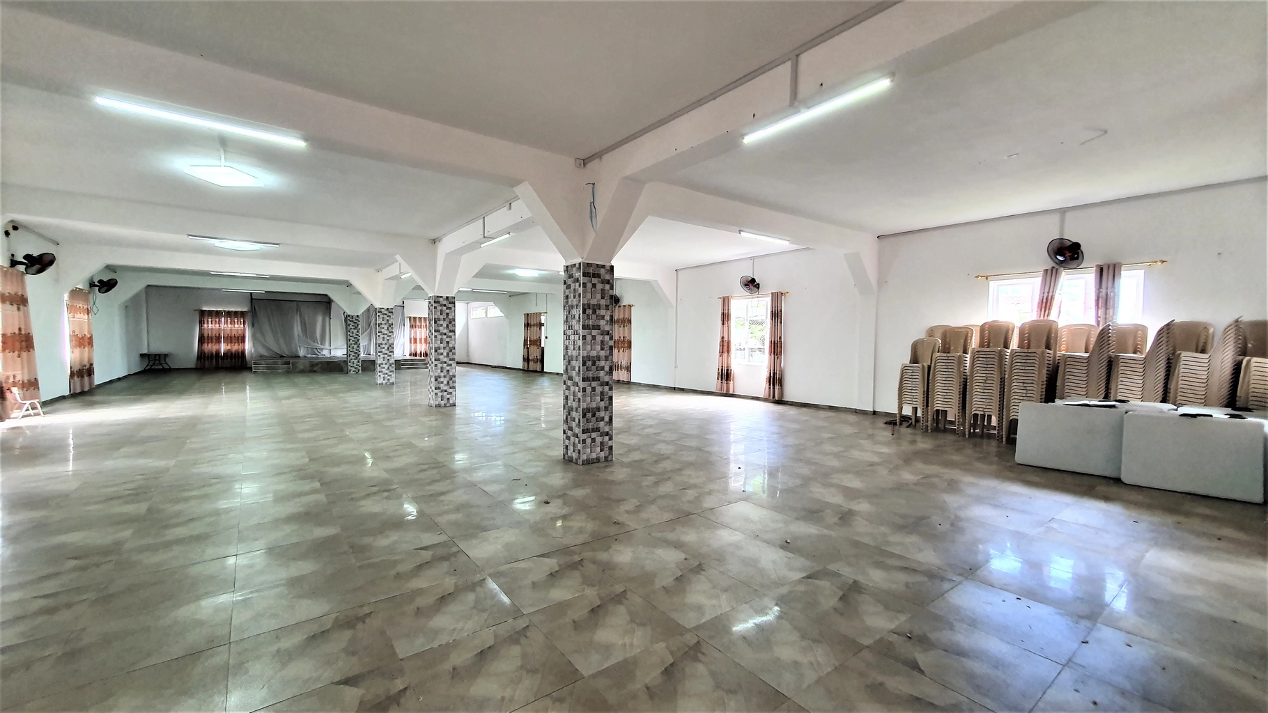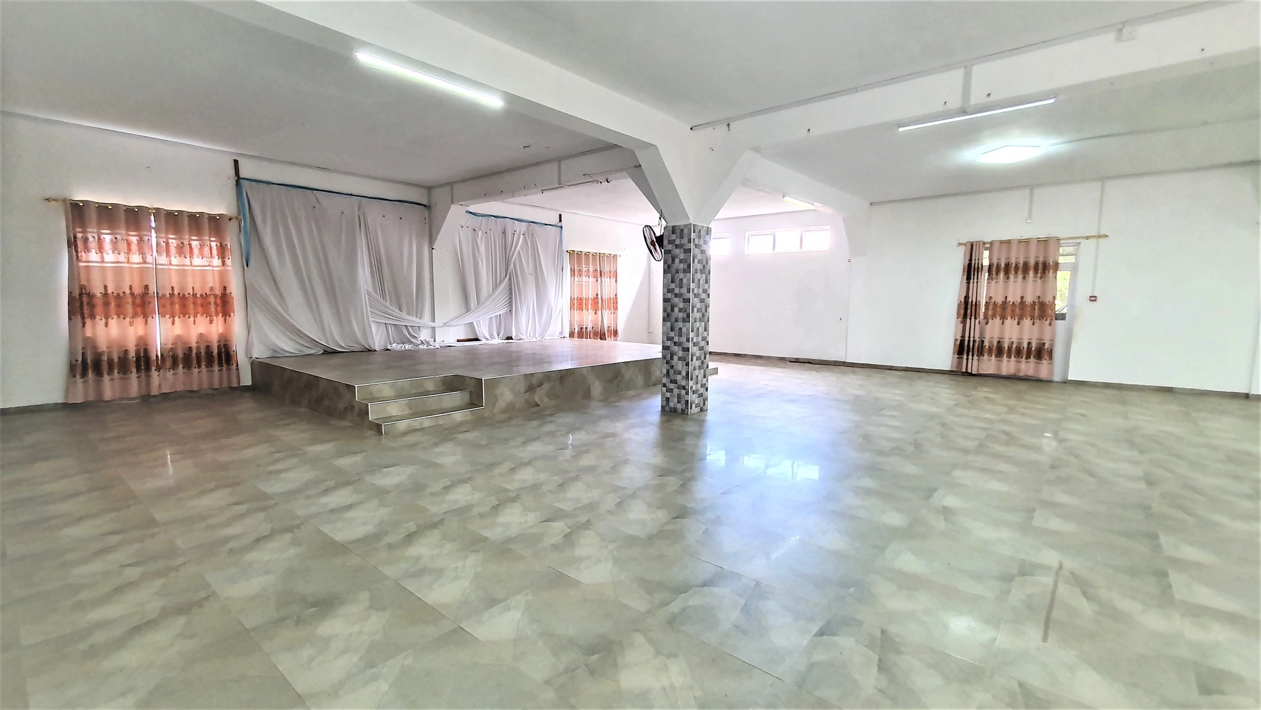 Located on Gersigny Road, Riambel, Surinam, this banquet hall, built in 2016, is currently used for wedding and reception functions. It is conveniently situated near SSS Sungeelee College and Quincaillerie Caunhye. With a spacious courtyard that can accommodate 25-30 vehicles, this property offers excellent potential for other business ventures.