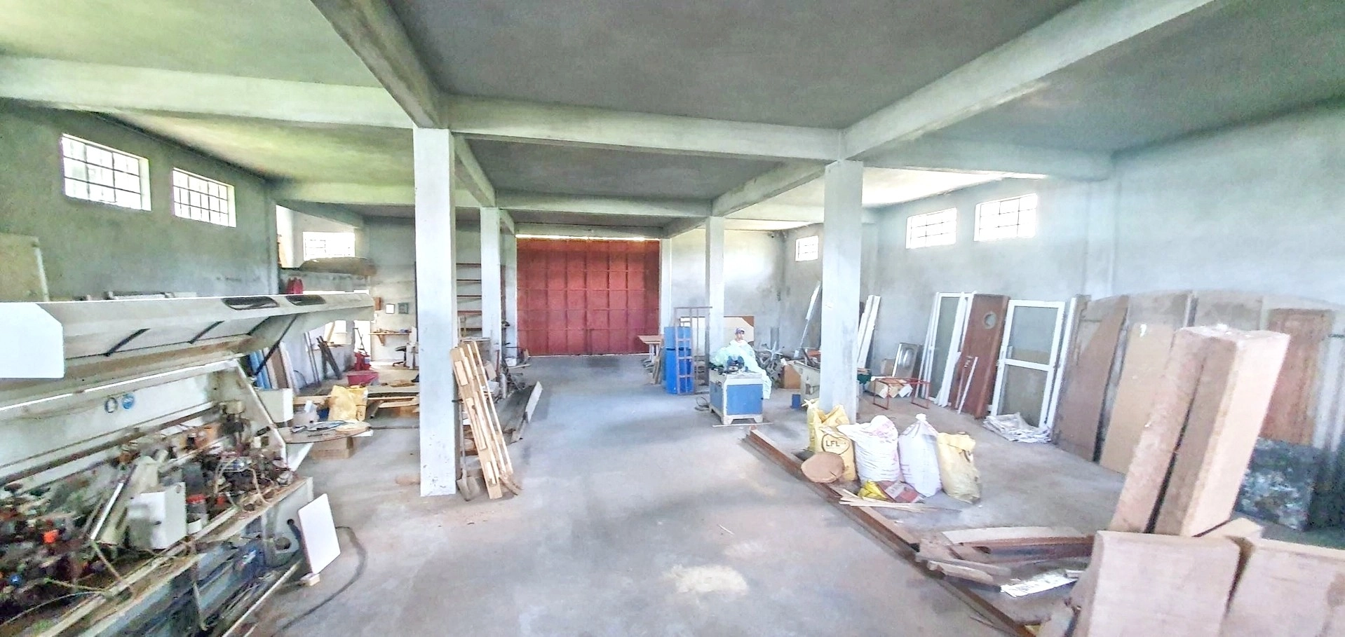 Solid building of approximately 4,300 sqft, currently used as a workshop and storage space.