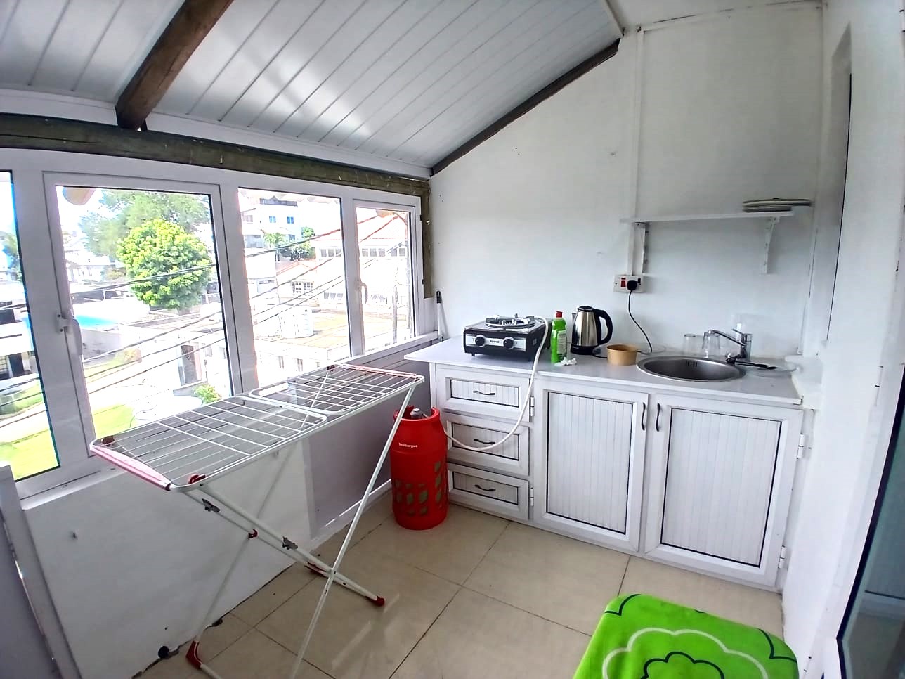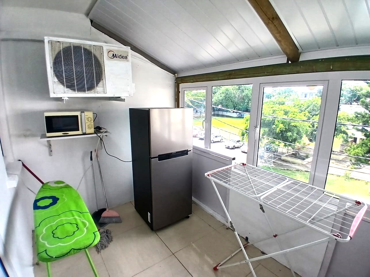 Back balcony with kitchen, fridge